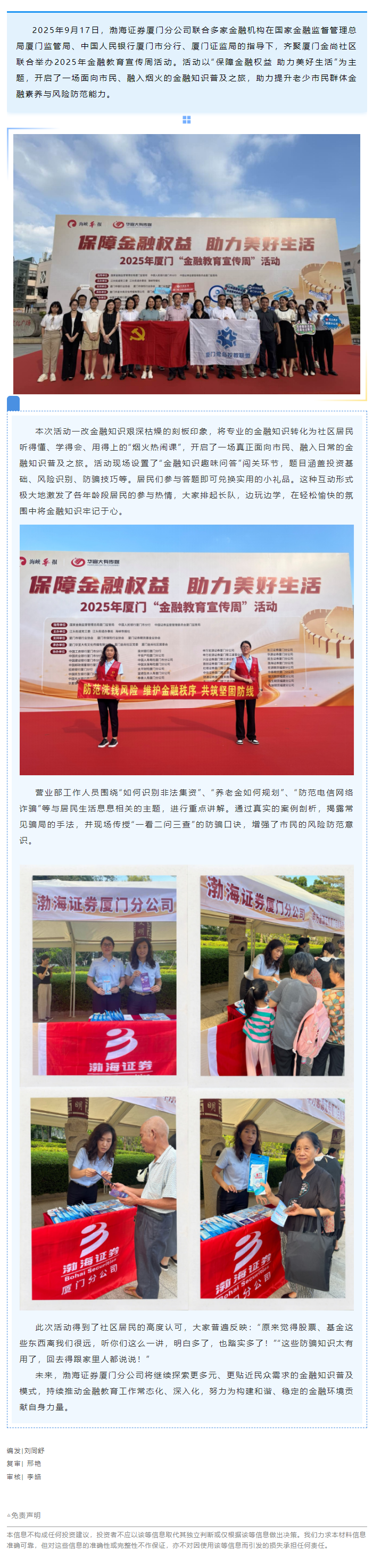 【惠企惠众·渤海在行动】渤海证券厦门分公司走进金尚社区开展“金融教育宣传周活动”