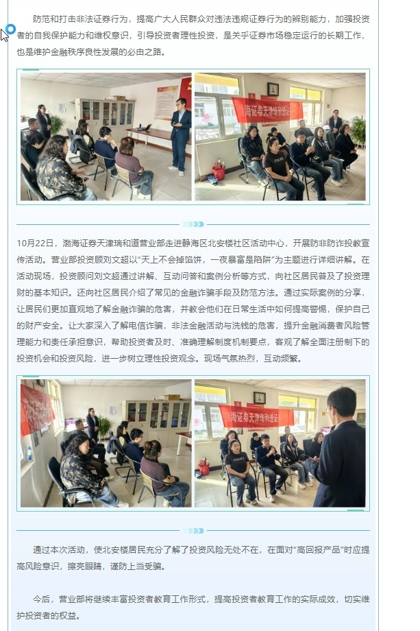 【惠企惠众·渤海在行动】渤海证券天津瑞和道营业部走进北安楼社区