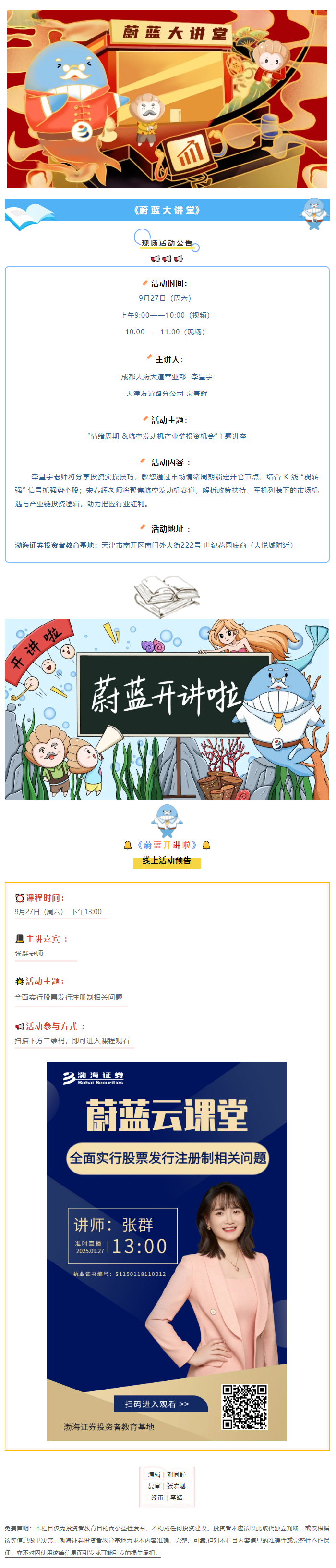 蔚蓝大讲堂丨“情绪周期 &航空发动机产业链投资机会”主题讲座& 蔚蓝开讲啦丨全面实行股票发行注册制相关问题
